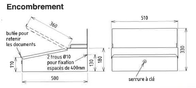 Ce pupitre se fixe au mur. Il permet d’avoir un support plan et propre pour écrire et également de protéger les documents des souillures.