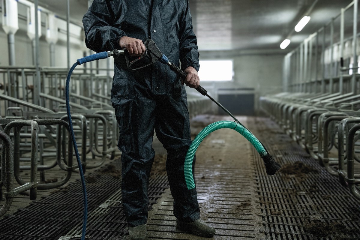 Raccorder le suceur à gravats au nettoyeur haute-pression à l’aide d’un raccord à molette de calibre correspondant.