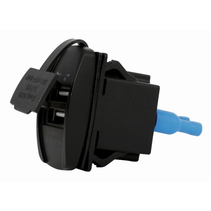 Prise USB à DEL rétroéclairée bleu avec double chargeur USB. Compatible en 12V et 24V les prises USB délivrent 3.1A (2.1A + 1A) pour une charge rapide des téléphones mobiles, PDA, tablettes, GPS et autres appareils rechargeables par USB.